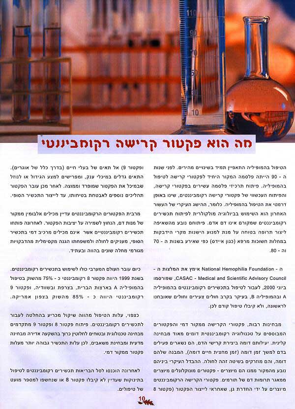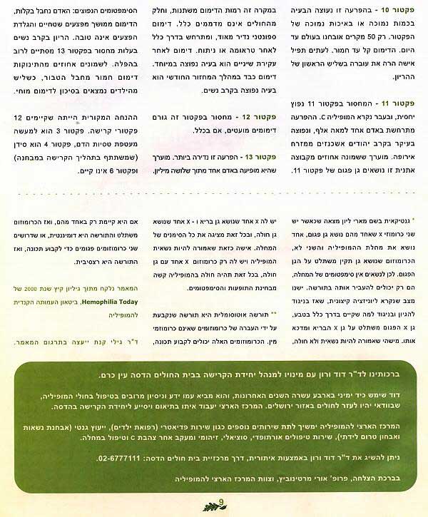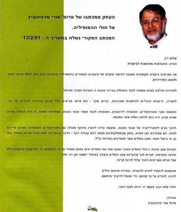 העתק ממכתבו של פרופ' אורי מרטינוביץ אל חולי ההמופיליה