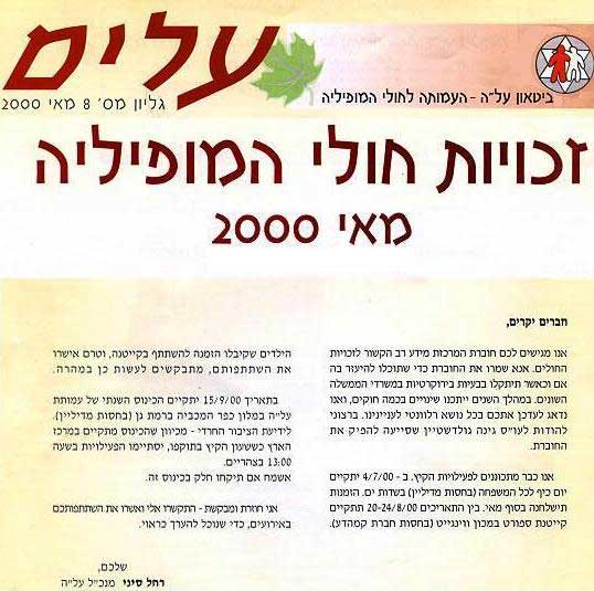דף הבית פרסומים עיתון העמותה: "עלים" "עלים" גיליון מס. 8