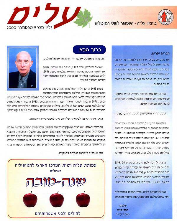 דף הבית פרסומים עיתון העמותה: "עלים" "עלים" גיליון מס. 9