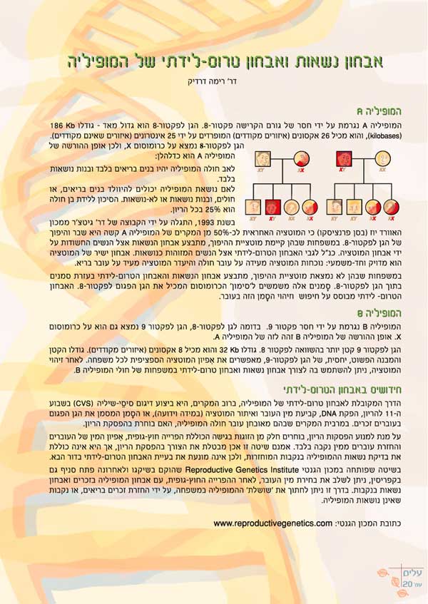 אבחון נשאות ואבחון טרום לידתי של המופיליה עלים 14/ ד"ר רימה דרדיק פברואר 2004