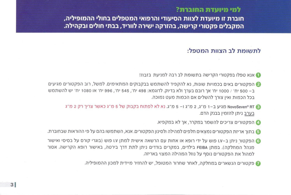 המידע על הפקטורים והמליברה נלקח מחוברות הדרכה שניתן להשיג במרכז הארצי להמופיליה