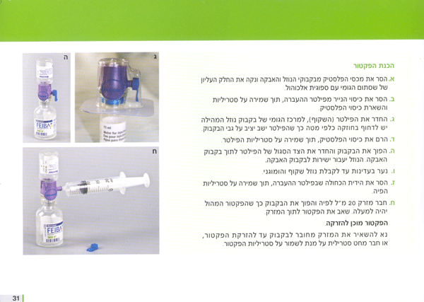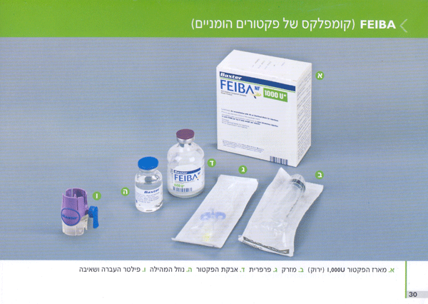 דף הבית רפואה וטיפול  טיפולים ותרופות פקטורים FEIBA (קומפלקס של פקטורים הומניים 1000יח')