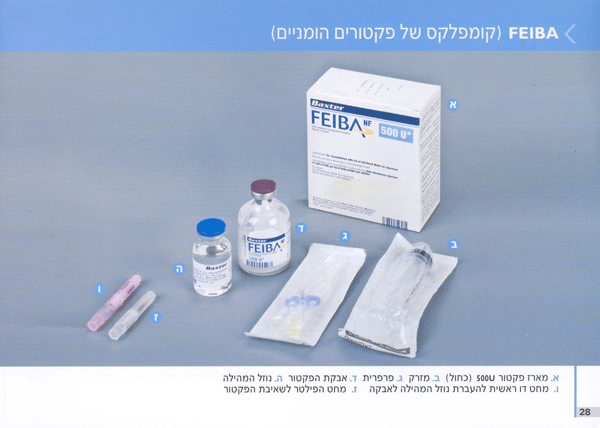 דף הבית רפואה וטיפול  טיפולים ותרופות פקטורים FEIBA (קומפלקס של פקטורים הומניים 500 יח')