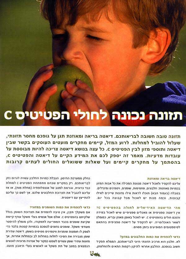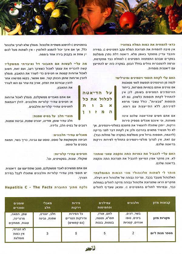 תזונה נכונה לחולי הפטיטיס C  הסברים לגבי התזונה היעילה והבריאה ביותר לחולי הפטיטיס C עלים 10 מרס 2001