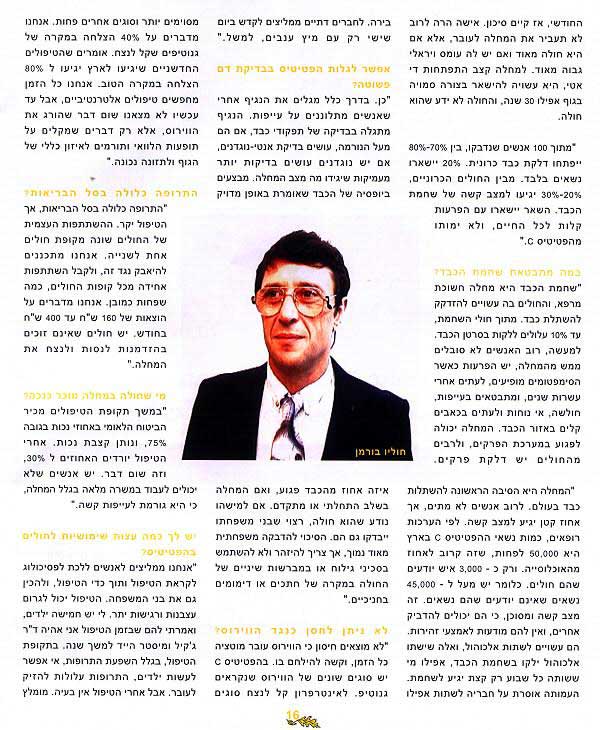 לנצח במלחמה נגד הווירוס חוליו בורמן, יו"ר עמותת חץ" המטפלת בחולי הפטיטיס C, מדבר על המחלה ועל העזרה שמעניקה העמותה לחולים עלים 10 מרס 2001