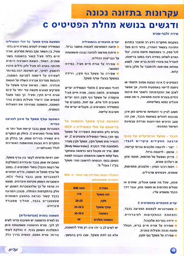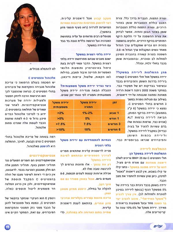 עקרונות בתזונה נכונה ודגשים בנושא מחלת הפטיטיס C  שירה זלבר-שגיא / עלים 13 מרס 2003