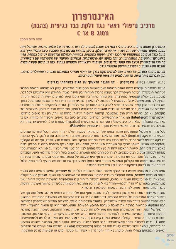 האינטרפרון - מרכיב טיפולי ראשי נגד צהבת מסוג B או C * חיים וייסמן / עלים 14 פברואר 2004