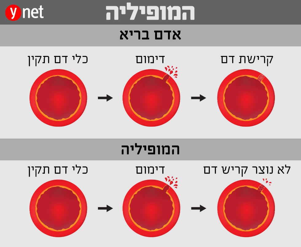 אצל בנים אפשר לזהות אותה כבר בברית המילה: הדימום אינו פוסק, התינוק מובהל לחדר המיון ובדיקות הקרישה מגלות כי מדובר בהמופיליה. כשאתם נחבלים קלות בכף הרגל או נחתכים מסכין המטבח, אתם מסתפקים בחבישה. אבל עבור חולי המופיליה, מדובר בסכנת חיים של ממש. החולים, שסובלים מחוסר בפקטורי קרישה, מדממים באופן שמסכן את חייהם ונאלצים לקבל עירוי מיידי בחדר המיון. תרופה חדשה מצליחה להפחית משמעותית את הדימומים ובמקרים מסוימים, אף להציל חיים.