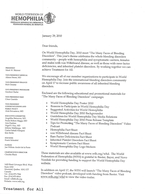 פוסטר הפדרציה הבינלאומית להמופיליה לרגל יום ההמופיליה הבינלאומי 2010 פברואר 2010