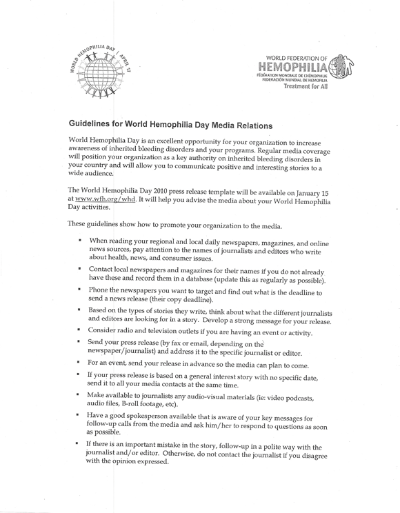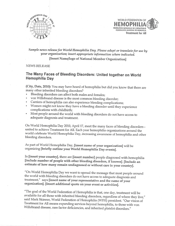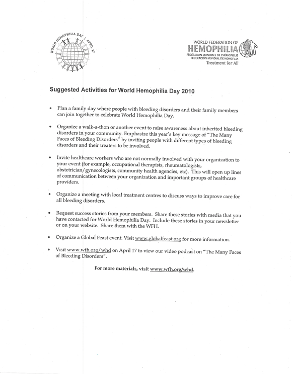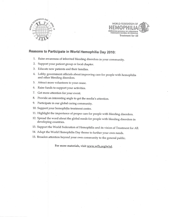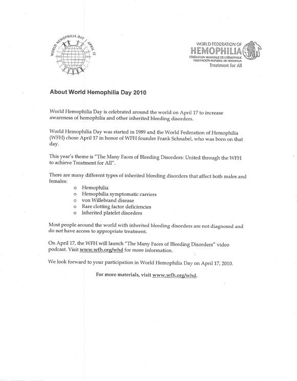 יום ההמופיליה הבינלאומי - 17 באפריל 2010