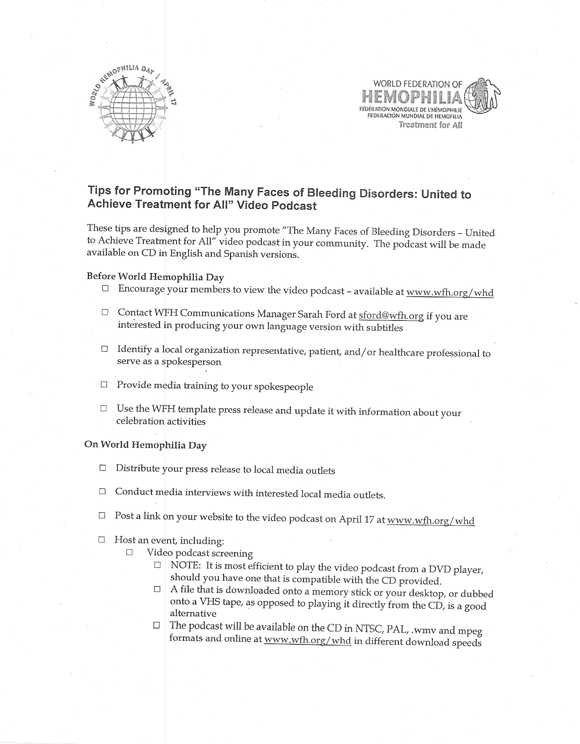 Tips for Promoting "The Many Faces of Bleeding Disorders: United to Achieve Treatment for All" Video Podcast