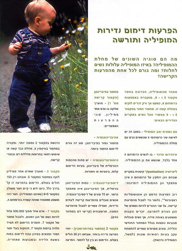 על המופיליה קובץ PDF 280KB ירחון הורים וילדים 214  רות אקסלרד-ארן נובמבר 2005