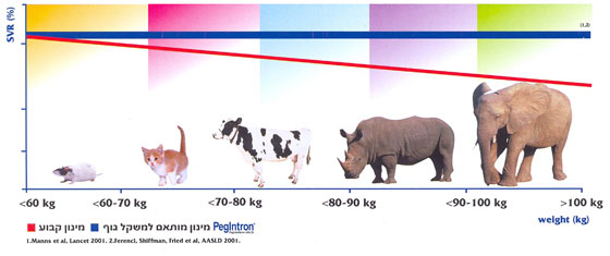 אחת מהתרופות הקיימות בשוק (בסל הבריאות), הינה תרופה המותאמת למשקל הגוף - PEGINTRON. ‏כפי שמו‏דגם בגרף הנ"ל: כאשר תרופה ניתנת במינון ‏קבוע (ללא התאמה למשקל הגוף): ‏בעלי משקל 65 ‏ק"ג ומטה - יקבלו מינון עודף שעלול להתבטא ביותר תופעות לוואי.