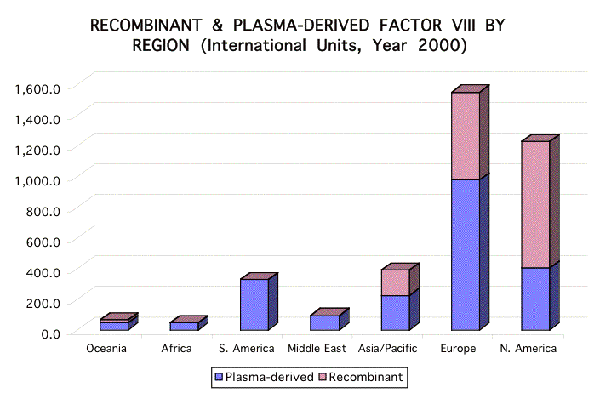 כיום עובר העולם המערבי כולו לשימוש בתכשירים רקומביננטים. בשנת 1999 היווה פקטור 8 רקומביננטי כ-75% מהשוק בטיפול בהמופיליה A בארצות הברית, בצרפת ובשוודיה, ופקטור 9 רקומביננטי היווה כ-85% מהשוק בצפון אמריקה.